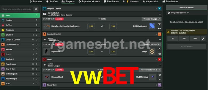 O vwbet oferece uma grande seleção de opções de apostas em e-sports com probabilidades competitivas